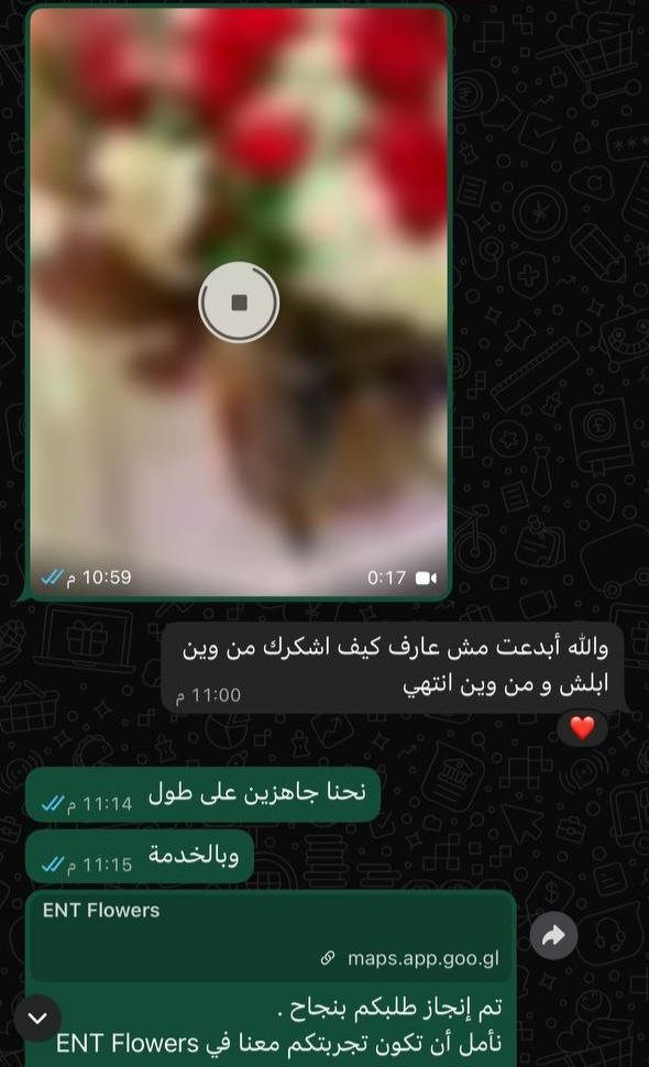 EXCELLENT Based on 119 reviews Posted on nonaTrustindex verifies that the original source of the review is Google. تعامل راقي جداً والورود جميلة للغاية 🥰. على الرغم من أن خياراتي كانت محددة، إلا أنهم لبوا طلبي تماماً كما أردت. شكراً لكم على احترافيتكم ولطف تعاملكم، أنصح بالتعامل معهم بشدةPosted on MARIHAME AMIRTrustindex verifies that the original source of the review is Google. شكرا بجد جدا علي تعبك و زوقك الورد كان اكتر من رائع شكرا جزيلا 🙏Posted on Rss AlmansooriTrustindex verifies that the original source of the review is Google. شغل ممتاز وأسعار جداً مناسبه بالتوفيقPosted on Rauda AlmansouriTrustindex verifies that the original source of the review is Google. اختيار موفق لأول تعامل معاهم الله يوفقكمPosted on Ahmad DarwishTrustindex verifies that the original source of the review is Google. خدمة ممتازةPosted on Mostafa AzamTrustindex verifies that the original source of the review is Google. It was amazing, all the best And thanks for your kind service ❤️Posted on amaraTrustindex verifies that the original source of the review is Google. I had a great experience with this flower delivery company. Everything was done perfectly — the flowers were fresh, beautiful, and exactly as expected. The delivery was convenient and on time, and the team was always in touch, which made the whole process smooth and stress-free. I’m very happy with the service and would definitely recommend them.Posted on Israa Osama HamdanTrustindex verifies that the original source of the review is Google. كل باقاتكم مميزة وكل مره بتكون احلى من يلي قبلها 😍😍