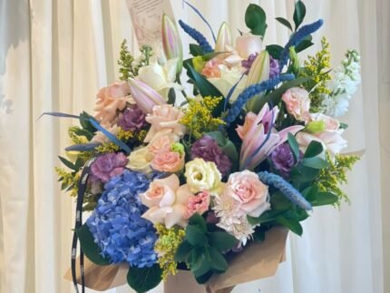 13 roses . 1 hadrengya . 3 liley . 2 mathiola . 3 cersantemom .6 corneshyan . 3 astolola .