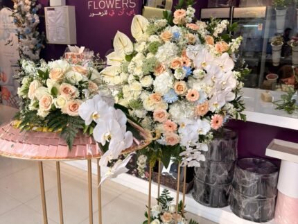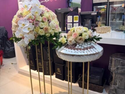 2 Antorio .2 lilys . 10 baby roses . 4 white roses . 1 anfenete roses . chocolate . ruskas