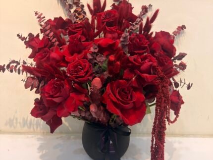 10 hadrengya . 6 mathyola .10 cersantemom .17 bige roses , ruskas . limonium . chocolate .1 anfenete roses .