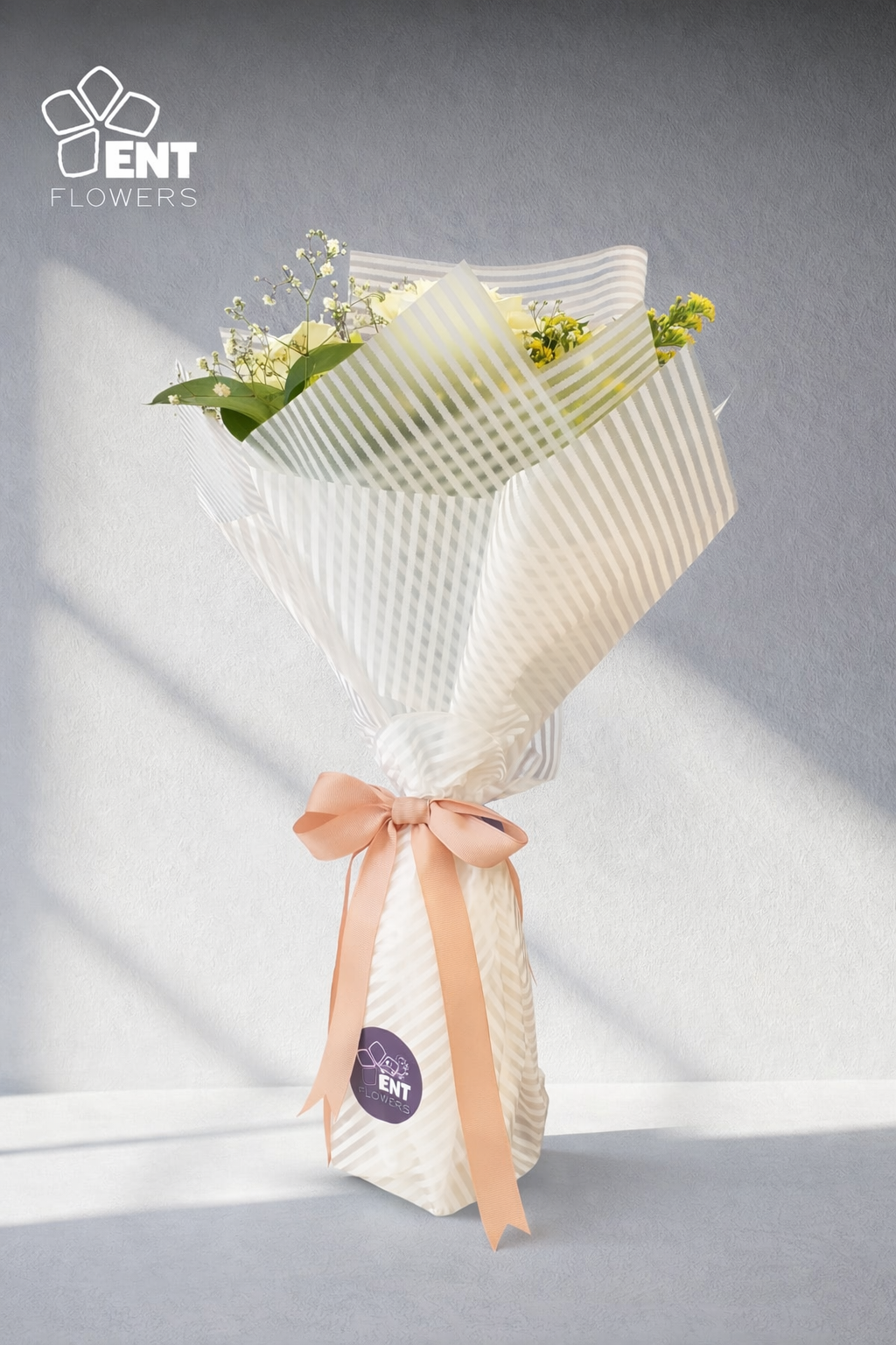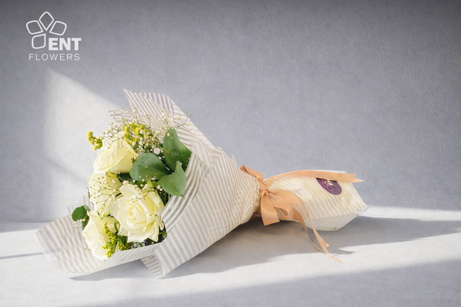 5 Athena Rose White and Million star Gypsophila and nice wtapping amd Ribbon