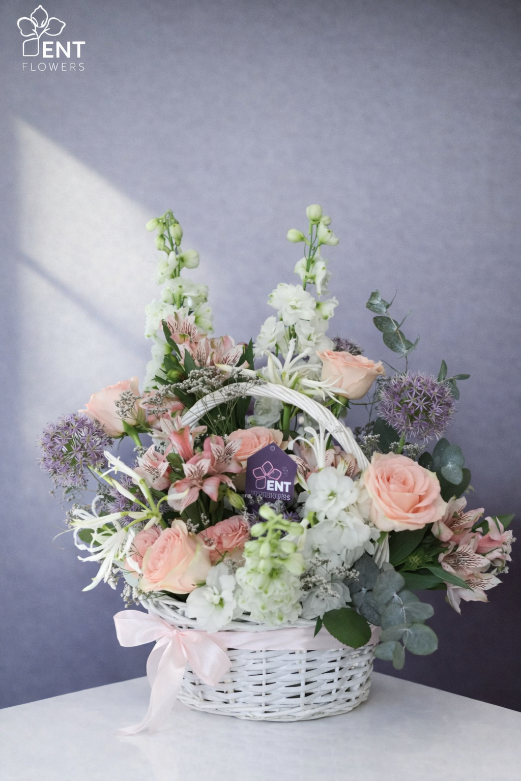 Rose Fressia -8, Depenium – 3, Allium – 5, Alstromeria -5 , Nariam – 4, Brunia -1, Eucalyptus – 5
