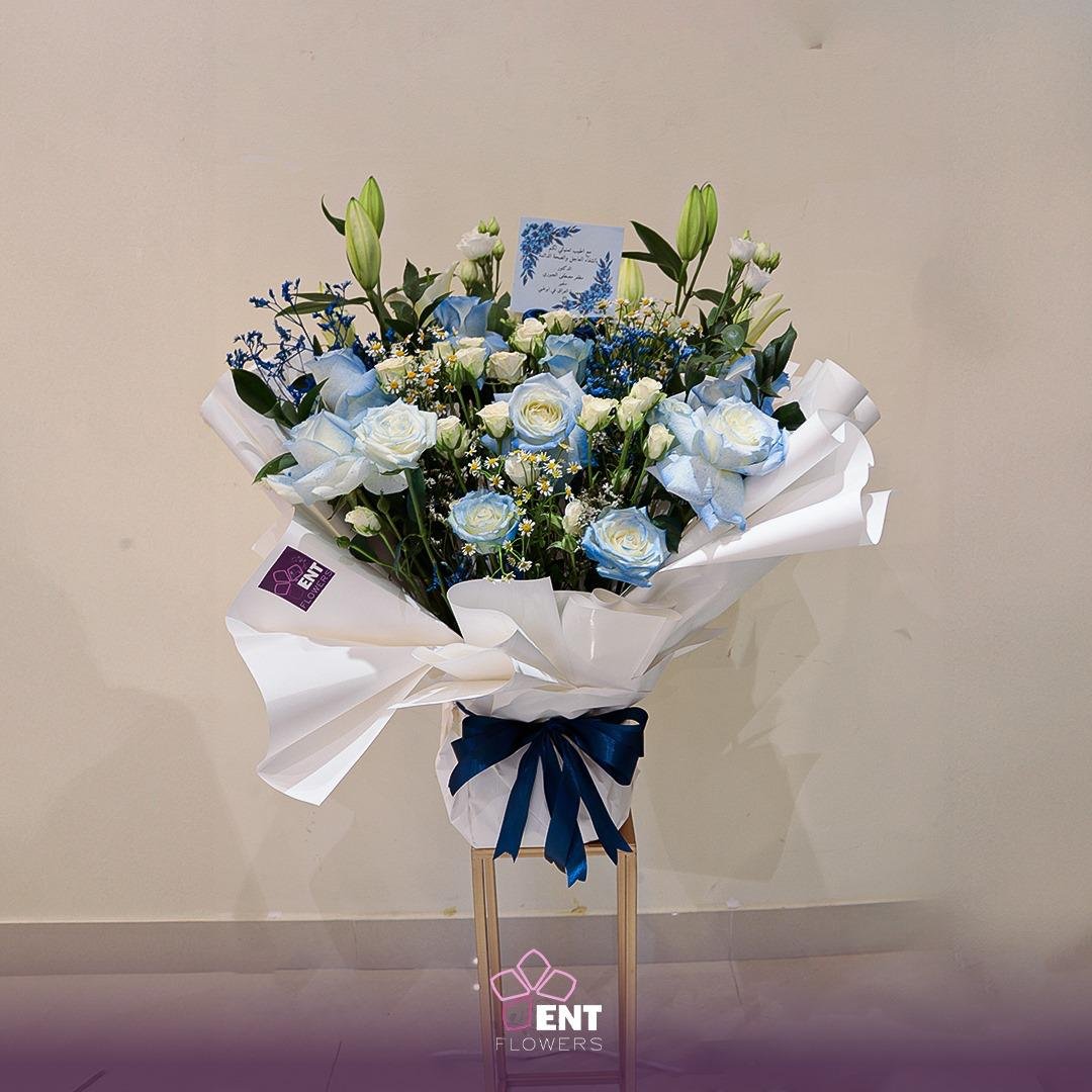 10 blue roses . 2 liley . 5 baby