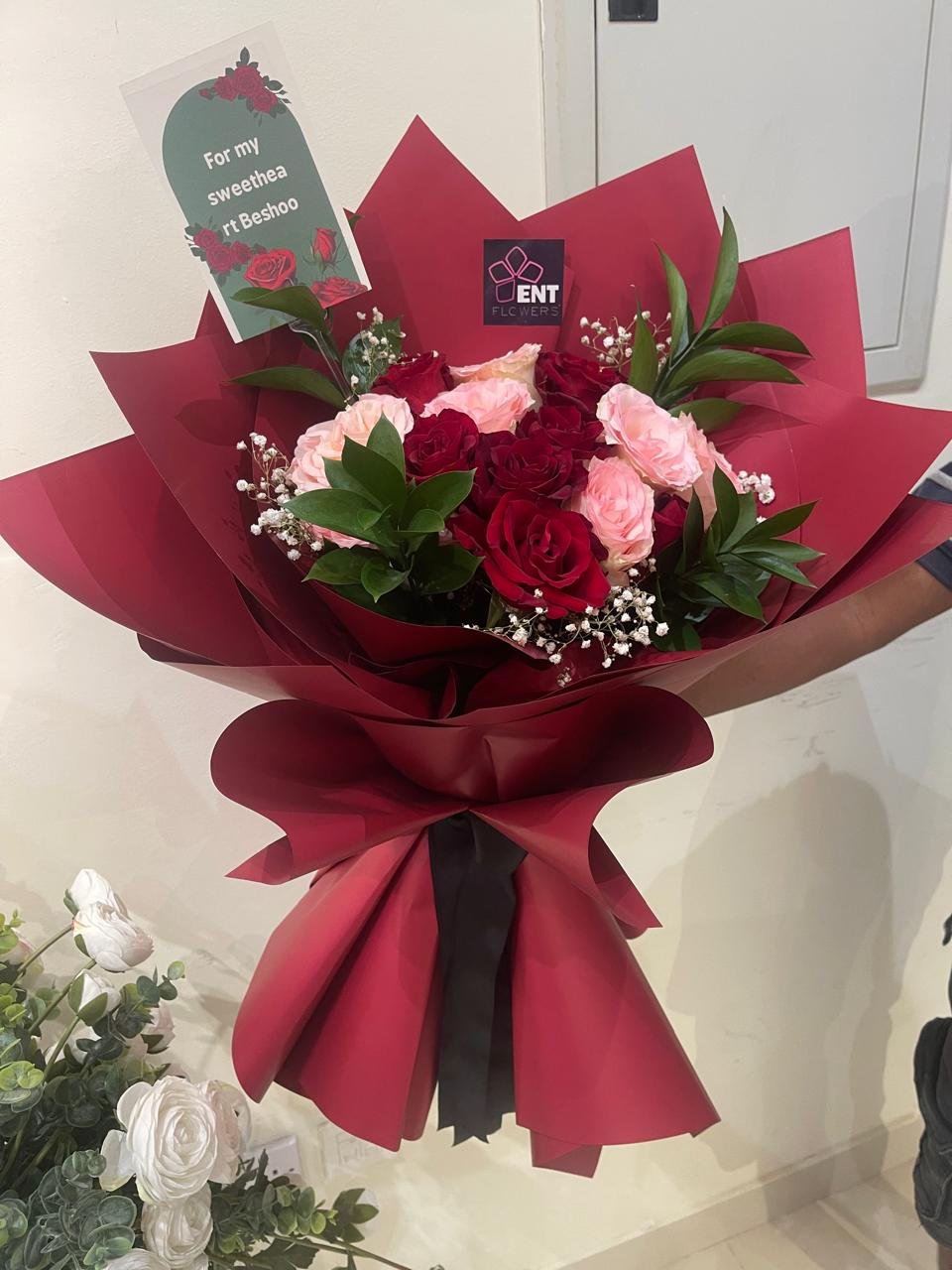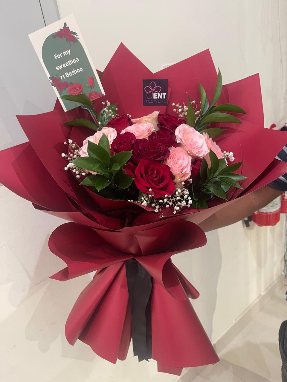 10 red roses . 10 pink roses .