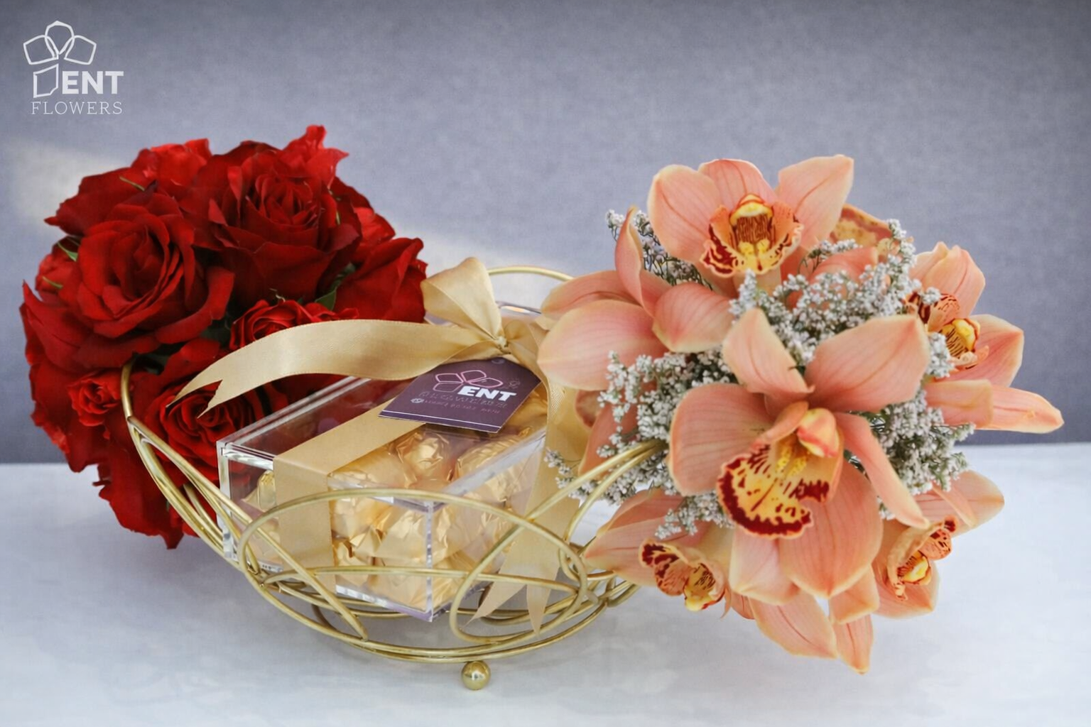 Chocolate, Small Box for the chocolate, fruits tray, Cymbidium, Rose and Baby Rose