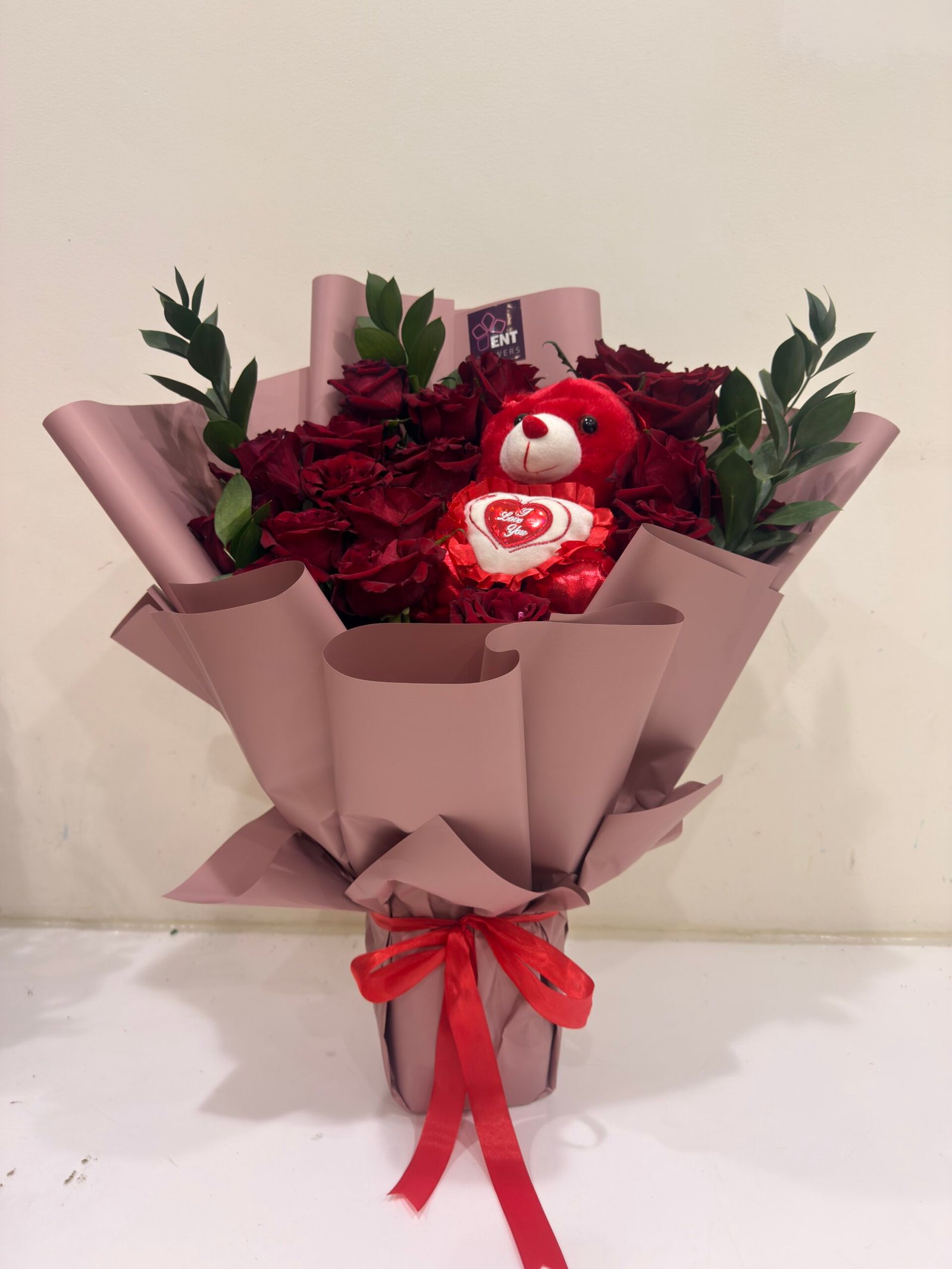 24 red roses and tedy ber red .